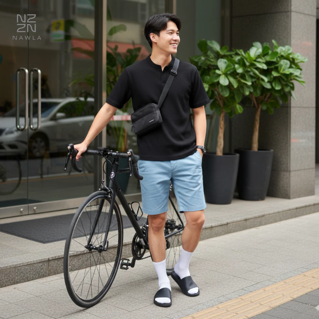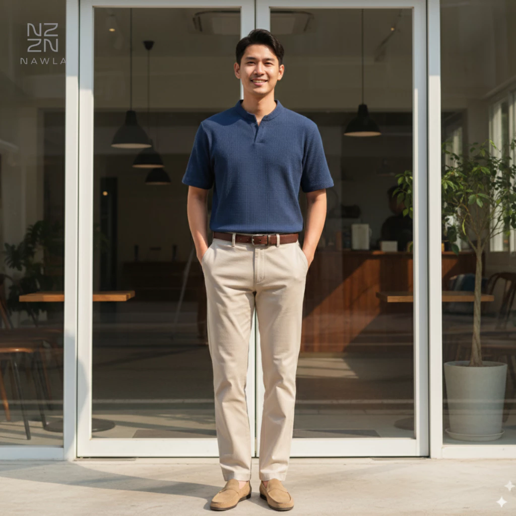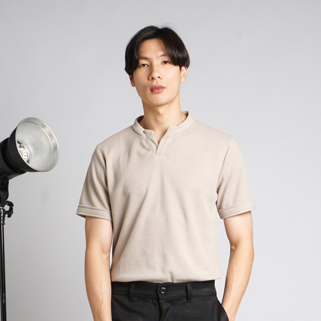 Shirt Knit Waffle Pria Lengan Pendek